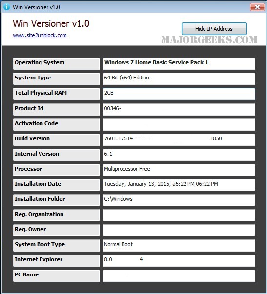 It will allow you to view the full operating system name, Windows version number, installation date, activation code, product ID, system root folder, organization and other useful system information