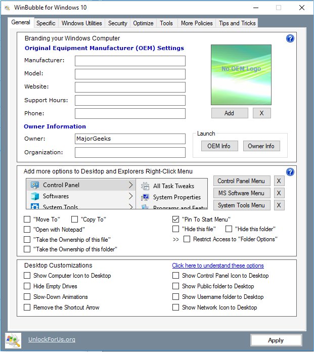 WinBubble will help you to change your Original Equipment Manufacturers (OEM) Information and logo without knowing the registry tricks.