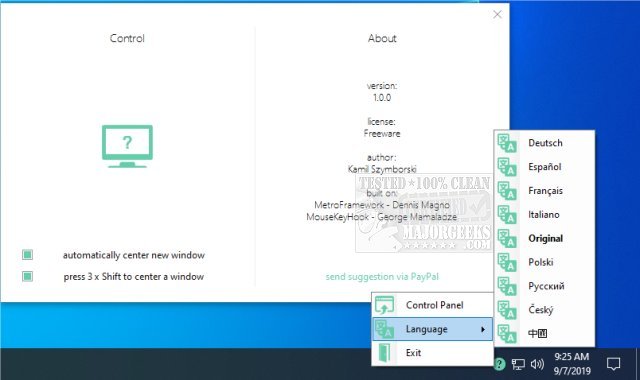 This little app resides in the systray and will help keep your desktop organized and tidy, making sure that all your windows are neat and orderly. It provides you with a centered window aligned to your working area, keeping it tidy. It also alleviates pop-ups being displayed haphazardly in any location.