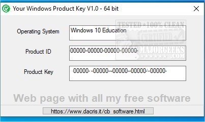 WinKey is designed to quickly display your operating system type, version/build, product ID, key number, and the motherboard's serial number.