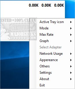 Numerous tools are filed under Mode, Max Rate, Graph, Adapter, Network Usage, and more. Each of these categories has numerous tools within. You can get an idea of these in the second and third screenshots below.