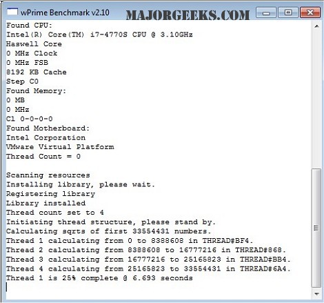 wPrime is a leading multi-threaded benchmark for x86 processors that tests your processor performance by calculating square roots with a recursive call of Newton's method for estimating functions
