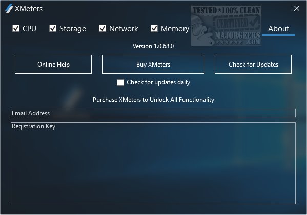 XMeters provides configurable system statistics including CPU, network, memory, and more right in your system tray.