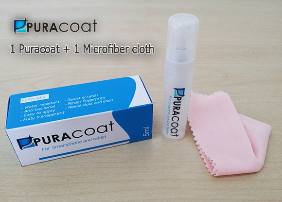 The Puracoat liquid screen protector will be packaged with a microfiber cloth, so it can be applied right out of the box to protect screens from fingerprints, dust, stains, scratches and water damage.