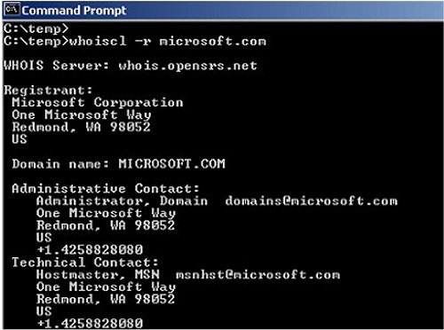 WhoisCL [-r] [-n] [-socks4] [-socks5] Domain