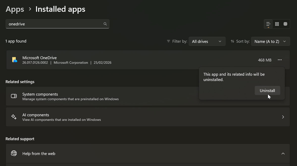 - Find Microsoft OneDrive on the list, and click the three dots next to it.