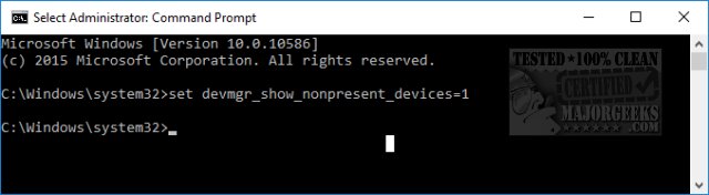 2: Type in set devmgr_show_nonpresent_devices=1 then enter. Nothing will happen on screen. That's OK, close the command prompt.