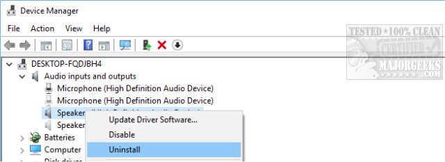 5: Select the non-present device(s) causing the problem and either select the red X in the menu bar or right-click and choose Uninstall. Repeat this step for any other non-present devices.