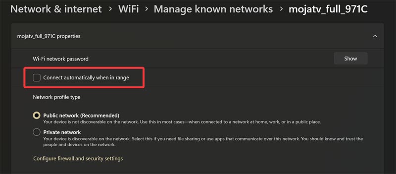 You can manage all your known networks from the Settings, as Windows remembers the ones you've previously connected to. You can set it up to automatically connect to them whenever you're in range. Again, it may be convenient in some cases, but it's a risk if you're reconnecting to old public networks.