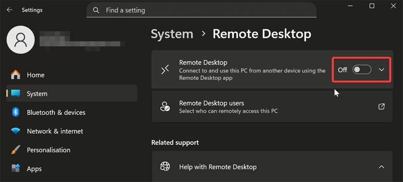 - Go to Settings > System > Remote Desktop, and toggle it off.