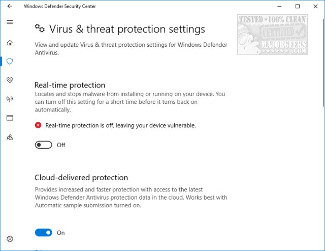 Now, return to the Virus & threat protection settings window and toggle Real-time Protection and Cloud-delivered protection on.