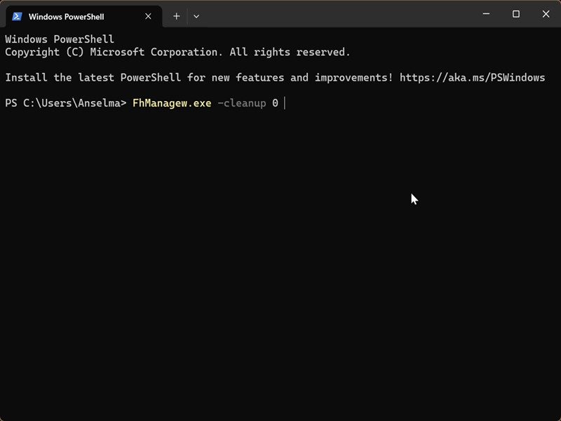 Use File History Cleanup in Command Prompt/PowerShell