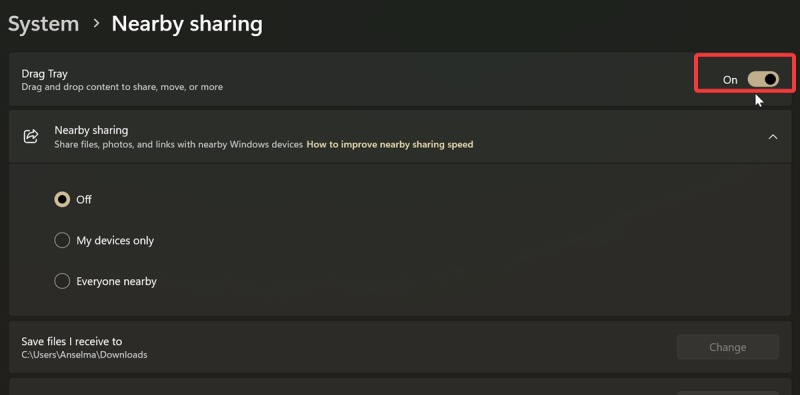 - Go to Settings > System > Nearby sharing.