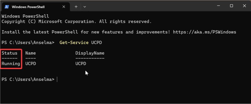 - Type the following command and press Enter: Set-Service -Name UCPD -StartupType Disabled