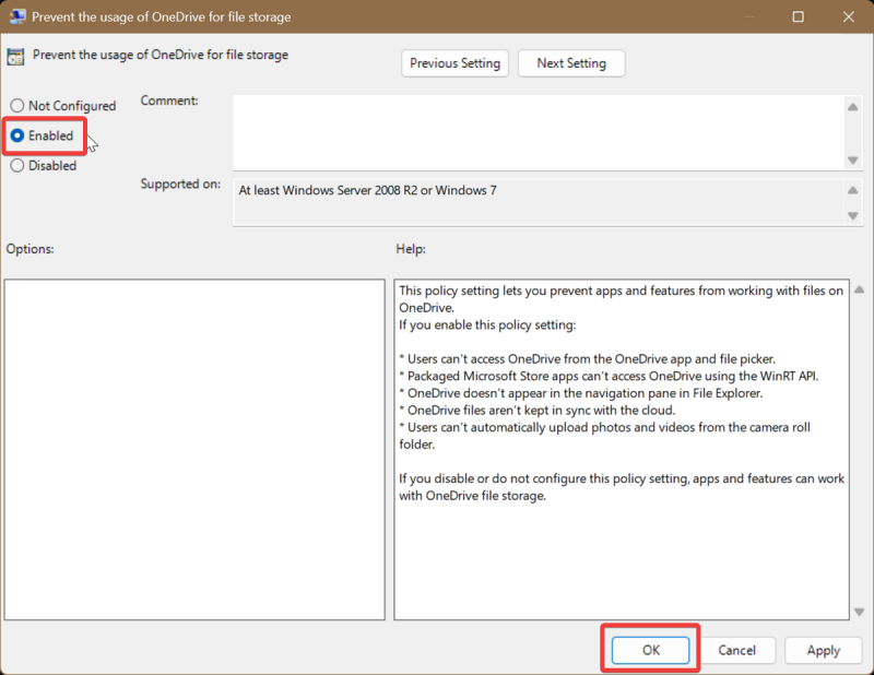 This editor is available to Windows 11 Pro, Education, and Enterprise editions (sorry, Home edition owners). If you can't use it but want to disable OneDrive, you can skip to the next method.