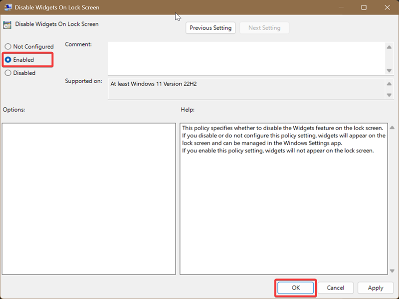 Alternatively, there's a specific group policy to disable lock screen widgets for all user accounts. However, the Local Group Policy Editor is available exclusively in Windows Pro, Education, and Enterprise editions. The group policy is also yet to be rolled out in all regions. So, if you can't find it, skip to the next method.