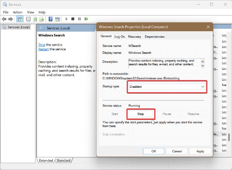 Once again, you'll need elevated rights to make these changes. Here's how to disable search indexing: