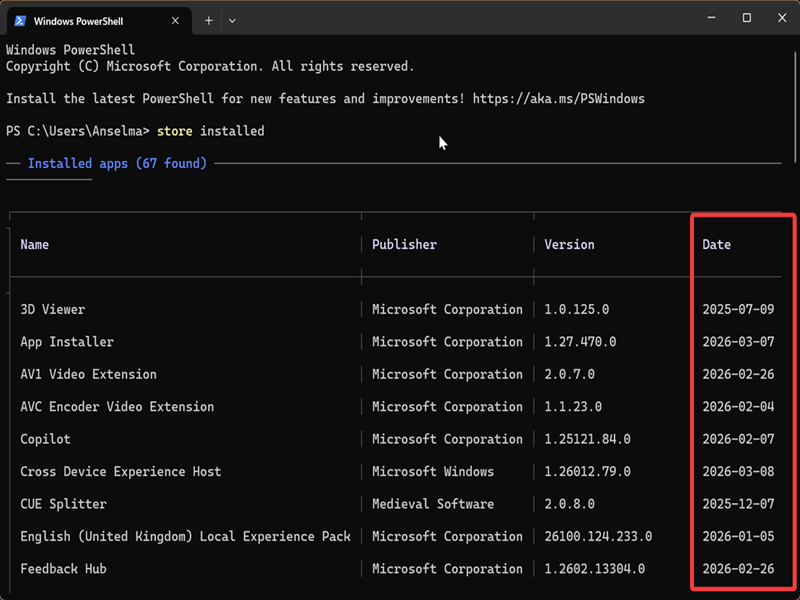 Alternatively, you can use the new command-line tool that lists all your Microsoft Store apps: