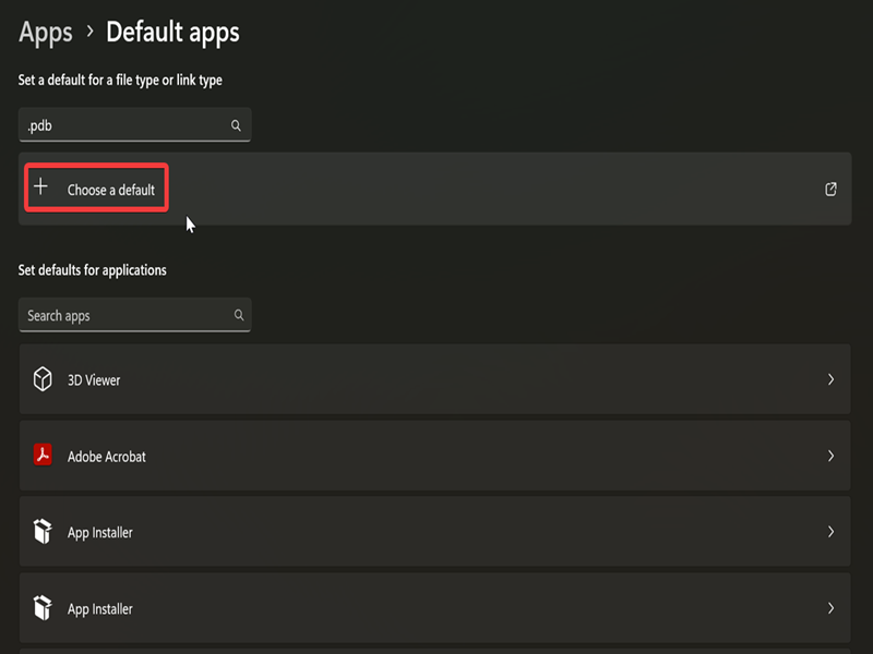 - To set a default for a file type or link type: Enter a file/link type in the search box, and press the Choose a default button. In the new window, click on a program from the list, Browse apps in the Microsoft Store, or Choose an app on your PC. When you're done, hit the Set default button.