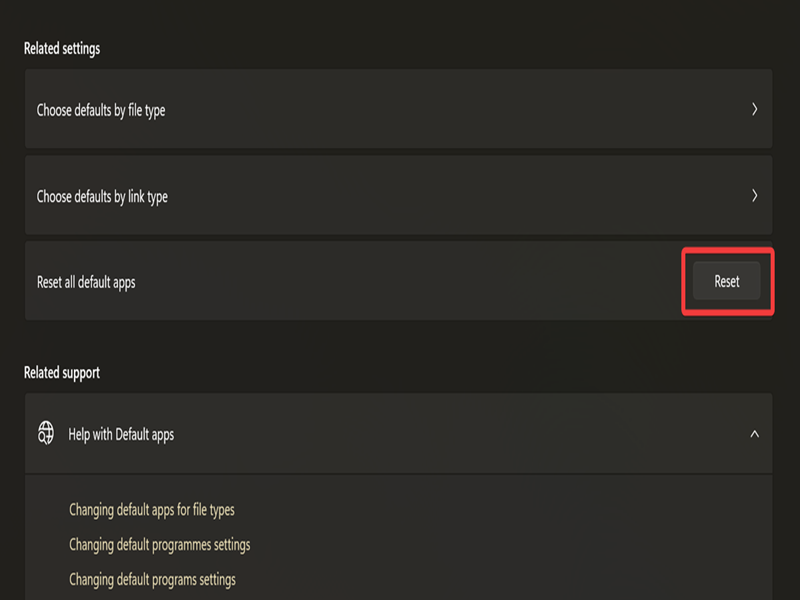 Finally, if you want to reset all programs, you can do so on the Default apps settings page. Scroll down to Related settings, and hit the Reset button. Click OK to confirm your decision, and you're good to go.