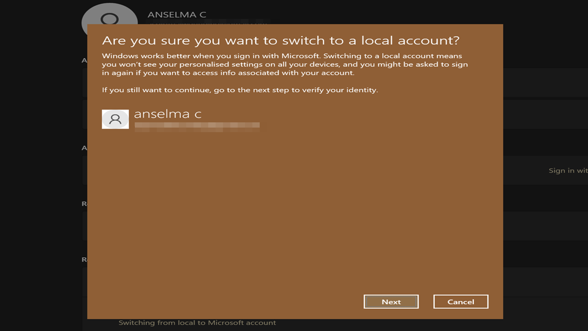 If you're currently using a Microsoft account, here's how to change to a local one: