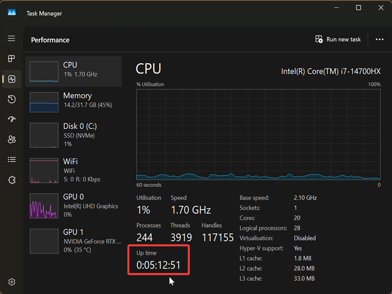 Ways To Check System Uptime in Windows 11