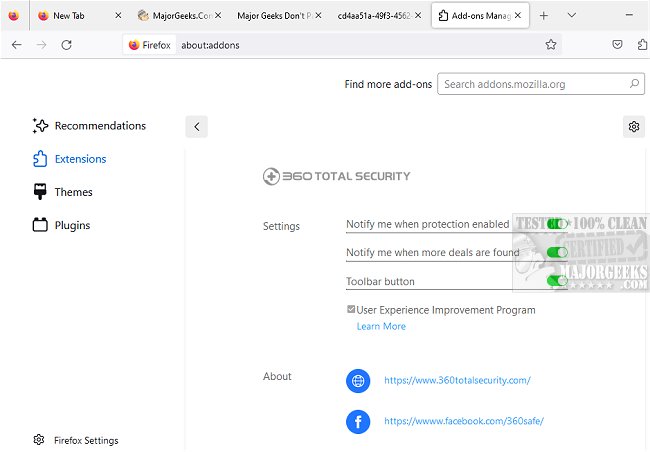 360 Internet Protection is an add-on for Firefox that can detect harmful URLs instantly and help prevent web-based dangers.