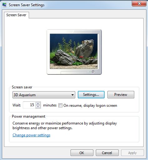 To make sure this fish tank screensaver is your default Windows screensaver right click with your mouse on your desktop, select properties, or go to appearance and set it up.