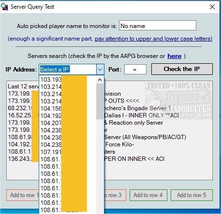 Note: when a match ends, the game is reset, and for some seconds, players are set to zero from the client. So AAPG Watcher 2 intends as an End Match to find players a specific time and zero players after a brief time. But you can also start the monitoring exactly in this reset time. In this case, you will not get an alert, since player number STARTS from zero (note that the player's box color becomes yellow). The same scenario occurs if the server is without players. In this case, stop the monitoring and manually check the current state of the server.