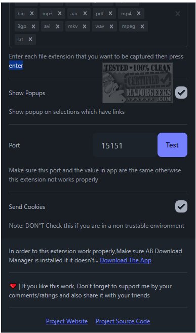 ● Automatically captures Download Links and sends them to the AB Download Manager app