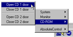 AbsoluteControl system control software offers wide range of OS control tools available on single click. It can set your screen resolution with highest possible refresh rate, open\close your CD drives, reboot, shutdown, poweroff, hibernate and send to standby mode your system. Web-search available with one click! AbsoluteControl monitors memory usage providing you with most up to date information without the need to perform even a single mouse click. AbsoluteControl handles ALL Microsoft operating systems, runs in background and is capable of automatic updating. The distribution size is 192 kb only including comprehensive illustrated help system!