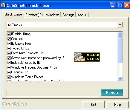 CuteShield Track Eraser protects your privacy by cleaning up all the tracks of your Internet activities. The tool is integrated with IE and it can erase the browser cache, history, cookies, typed URLs, autocomplete list and so on in one click. You can also set the tool to automatically erase those tracks when you quit IE or quit Windows.