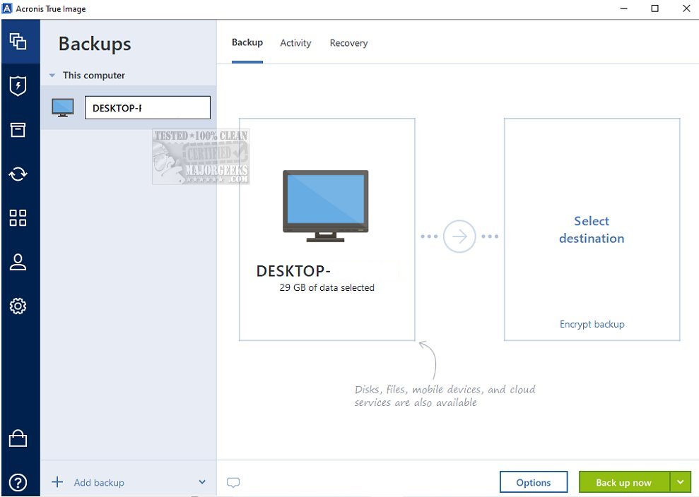 What sets Acronis apart is the full disk imaging. You're not just backing up your files. You're backing up everything: your OS, your software, your settings, and even the wallpaper on your desktop. Restore it all with a couple of clicks, and you're back in business like nothing ever happened.