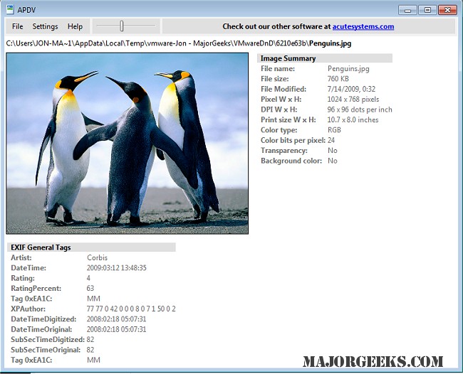 Acute Photo EXIF Viewer proves to be quite a simple solution for efficiently extracting this data; the interface is sparse and uncomplicated, allowing room to display the time's large amounts of data of an image as well as a preview of the photo in question.