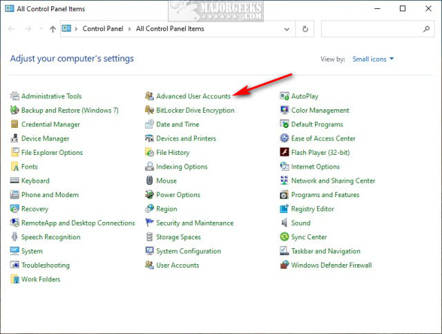 Add Advanced User Accounts to Control Panel in Windows contains the registry files to add or remove Advanced User Accounts from the Control Panel in Windows 10, 8, and 7.