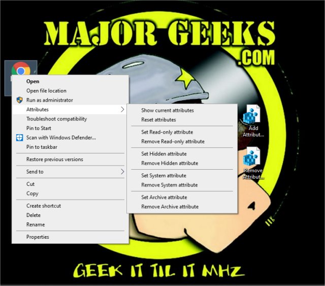 Add File Attributes Context Menu in Windows 10 contains the registry files to add numerous File Attribute options when you right-click on a file or folder.