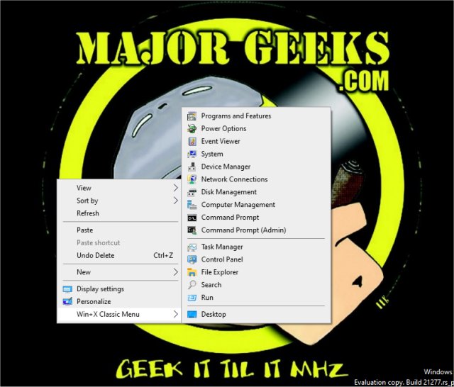 Add Win+X Classic Menu to Desktop Context Menu contains the registry files to add the classic Win+X menu to the Desktop Context Menu.