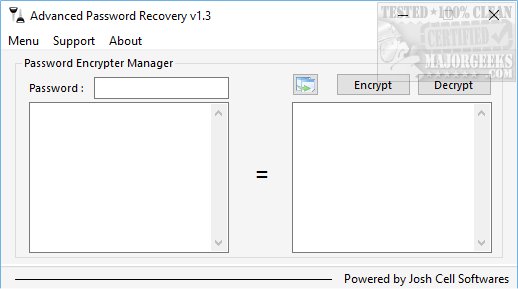 "Password Encrypter" simply encrypts a password. We put in a random name and were given nSIOVjZXN43sguBFNXh77g, for example. Being able to save your password securely makes this a handy tool for system admins.