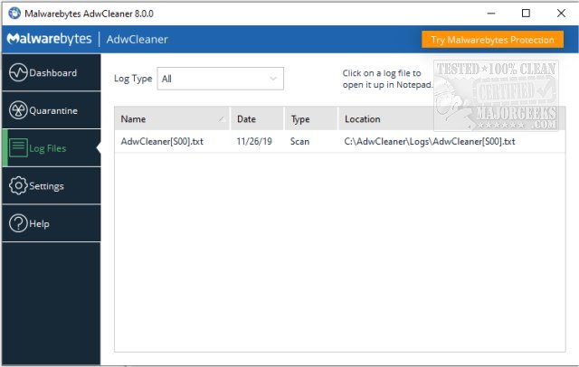 Did you find a rogue program or toolbar you donât like? AdwCleaner removes it and lets you view a detailed list of identified threats and their registry locations. Itâs total control in your hands.