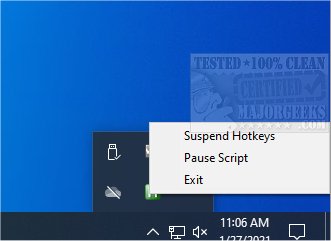 It has no interface; the only way you will know it is running is via the systray icon. Right-clicking on the icon provides you with the ability to suspend the hotkeys, pause the script, or exit. It is pretty foolproof, to say the least.