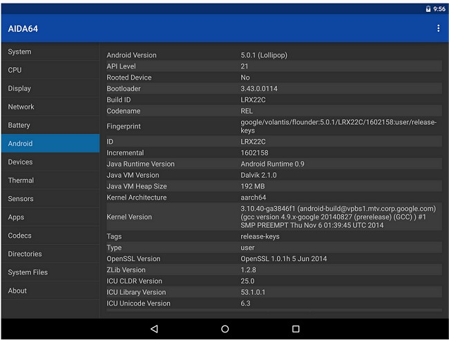 Aida64 for Android is the hardware and software information utility for Android based devices. Based on the extensive hardware knowledge of the AIDA64 for Windows application, AIDA64 for Android is capable of showing various diagnostic information for phones, tablets, smartwatches and TVs, including: