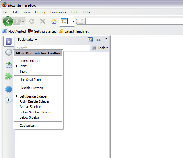 All-in-One Sidebar (AiOS) is a sidebar control for Firefox, inspired by Opera.