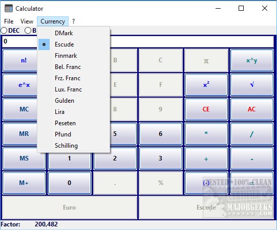 Alternate Calculator has two primary features that it is designed around. The first is currency translations, with eleven currencies currently supported. We assume this might change over time. The other primary feature is the conversion between different number formats. These are found at the top and are decimal, hexadecimal, binary, and customer-defined.