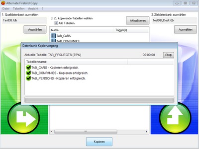 Alternate Firebird Copy offers the possibility to copy table contents of one Firebird/Interbase-database into another Firebird/InterBase-database.