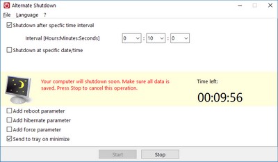 Alternate Shutdown is a freeware app that can shut down your computer after a period of time or at a specific date/time setting.