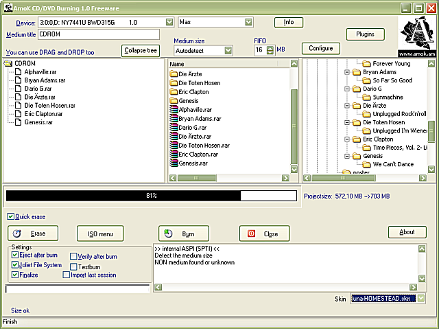 AmoK CD / DVD Burning has no media center, no WAV editor, no cover designer, and cannot create videos. AmoK CD / DVD Burning burns CDs and DVDs and offers all the necessary options - no more and no less.
