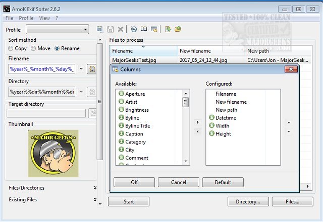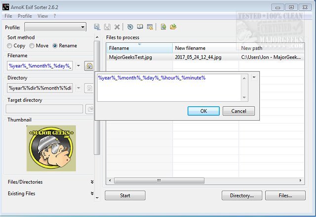 AmoK Exif Sorter will not only rename your pictures, but it can also copy or move them to a directory of your choosing. It includes a live preview of file names, a picture viewer including Exif information, a thumbnail view, an automatic update check, and the possibility to create profiles with different settings. You will be able to process entire directories (including subdirectories) or individual files. Additionally, the Exif date can also be changed to any time (plus/minus X days/hours/minutes, etc.). Another included option is the ability to rename non-image files such as videos.