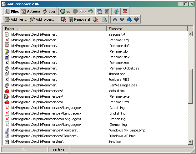 Ant Renamer is a free program that makes easier the renaming of lots of files and folders by using specified settings. The interface is clean and intuitive. All you have to do is to add files and then use the "Actions" section.