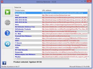 Antivirus Remover is a simple, portable utility that does what it says; it provides a link to download the removal tool for most popular anti-virus and anti-malware utilities.