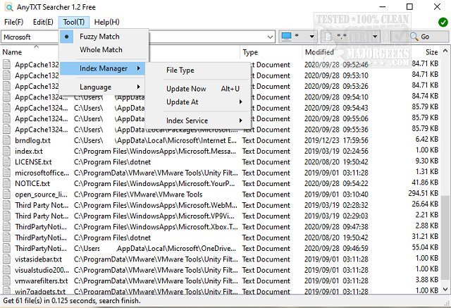 AnyTXT Searcher's UI is simple, only providing you with what is needed to find any text existing on your computer quickly, enter your search parameters, and hit go. You can mouse over a result and view a preview of the matched keyword without the need to open it. It does offer a few different search options to refine your search, like Fuzzy Match, Whole Match, File Type, etc., and operates relatively fast.